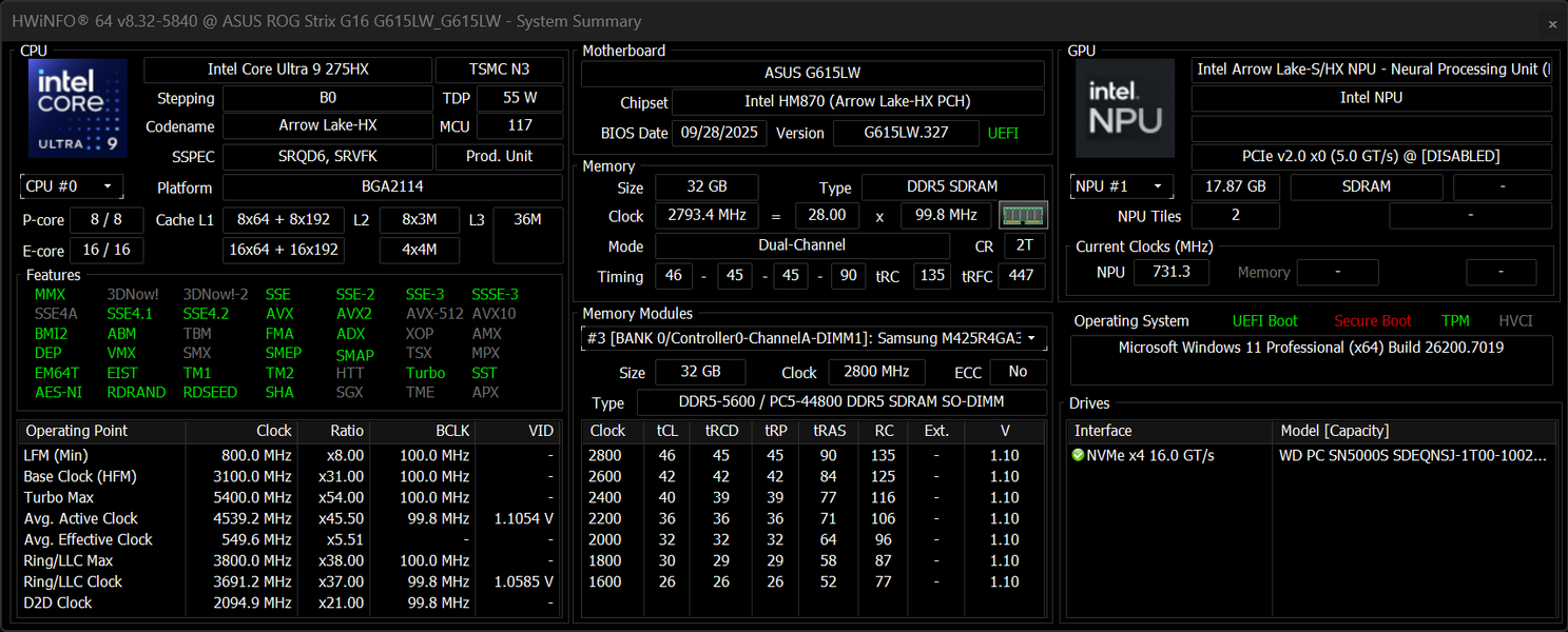 Почти в самом конце летней поры мы опубликовали обзор игрового ноутбука Asus ROG Strix G18 (2025) G815LW на базе центрального процессора Intel Core Ultra 9 275HX и видеокарты Nvidia GeForce RTX 5080 Laptop. То был крупный образец с экраном 18 дюймов. Теперь мы познакомимся с новинкой, которая обладает очень похожей конфигурацией, но располагает экраном 16 дюймов.