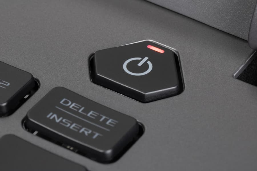 Кнопка включения питания расположена выше других возле правой петли крышки. По форме и размерам она отличается от соседствующих, поэтому ее нельзя перепутать с другими. Эта кнопка имеет собственный светодиодный индикатор красного цвета.