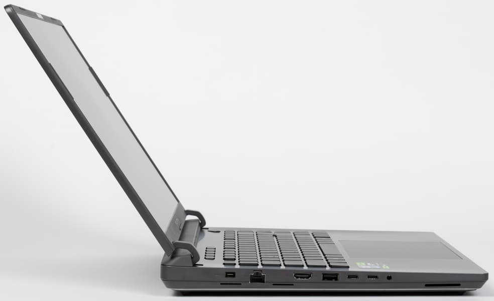 Ноутбук обладает 16-дюймовым экраном, поэтому скромнее по размерам и весу, чем 18-дюймовые аналоги. Максимальный угол откидывания крышки составляет примерно 152°. Она удерживается в закрытом состоянии при помощи петель, доводчиков и двух магнитов, скрытых под лицевой панелью у правого и левого передних углов. Ноутбук без особого труда раскрывается одной рукой, и корпус при этом не сдвигается не приподнимается.