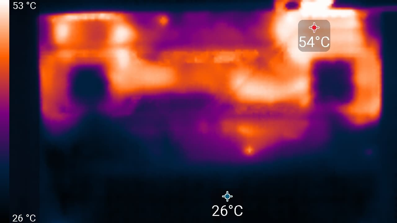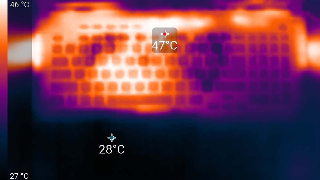 Ниже приведены термоснимки, полученные после долговременной работы ноутбука под максимальной нагрузкой на CPU и GPU (профиль Turbo):