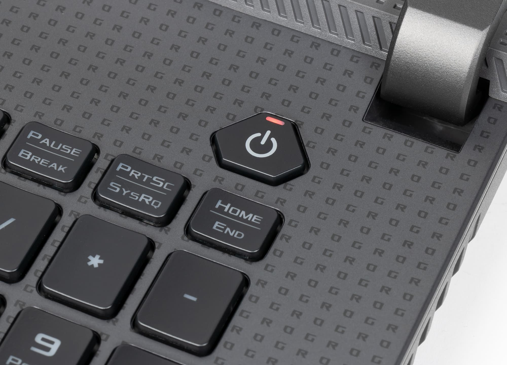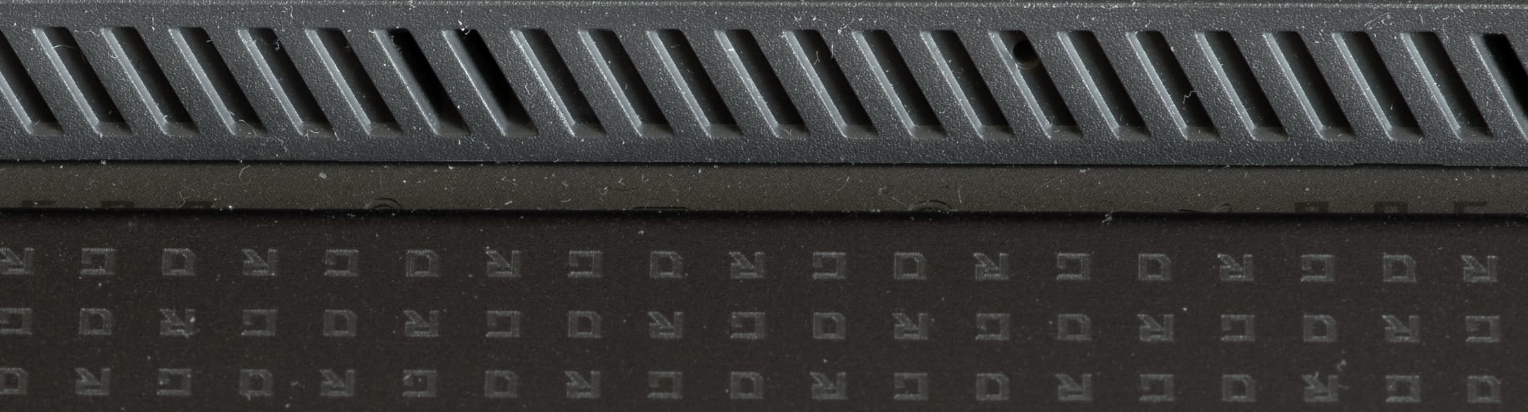 Крышка металлическая, серо-черная с матовой поверхностью. Отпечатки пальцев, образующиеся при прикосновении к ней, заметны в меньшей степени, чем на глянце, и к тому же легко стираются. Угол крышки заполнен массивом букв аббревиатуры ROG, нанесенных, вероятно, методом лазерной гравировки. Они почти неразличимы невооруженным глазом и кажутся просто мелкими квадратиками.