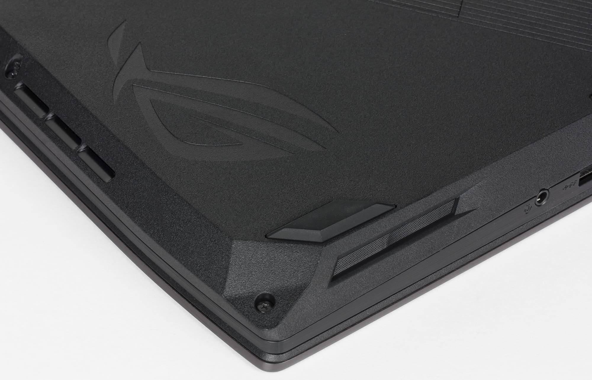 Толщина рамки вокруг экрана с боков составляет составляет 19 мм, сверху — 22 мм, а снизу — 34 мм. На верхней части рамки расположены веб-камера и отверстия двух микрофонов, а снизу — зеркальный логотип серии ROG.