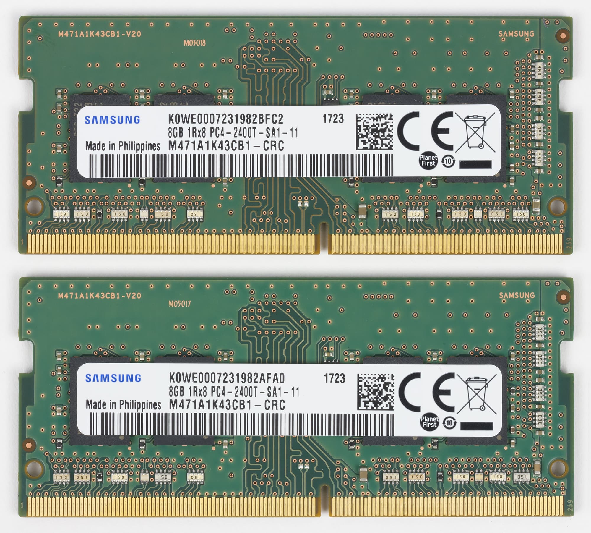 В нашем случае в ноутбуке было установлено два модуля памяти DDR4-2400 емкостью по 8 ГБ (Samsung M471A1K43CB1-CRC). Максимальный объем памяти, поддерживаемый ноутбуком, составляет 32 ГБ.