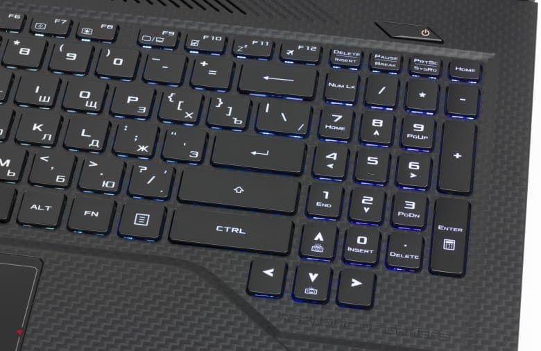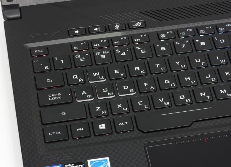 В ноутбуке Asus ROG Strix GL503VS Scar Edition используется клавиатура мембранного типа с увеличенным расстоянием между клавишами.