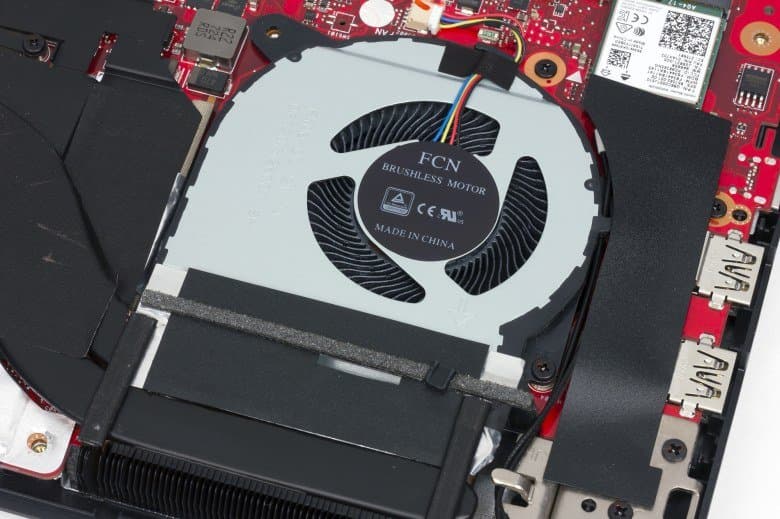 Система охлаждения ноутбука Asus ROG Strix GL503VS Scar Edition включает в себя два низкопрофильных вентилятора. Один вентилятор предназначен для процессора, а другой — для видеокарты. Остается выяснить, насколько шумной является такая система охлаждения.