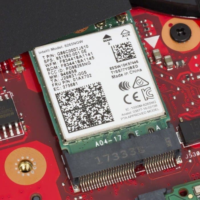 Коммуникационные возможности ноутбука определяются наличием беспроводного двухдиапазонного (2,4 и 5 ГГц) сетевого адаптера Intel Dual Band Wireless-AC 8265, который соответствует спецификациям Wi-Fi IEEE 802.11a/b/g/n/ac и Bluetooth 4.2.