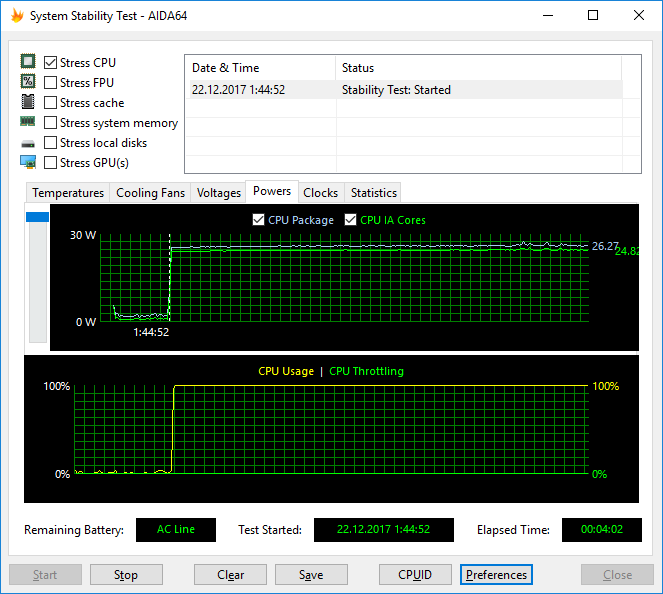 Температура ядер процессора при этом достигает 75 °C, а мощность энергопотребления процессора — 26 Вт.
