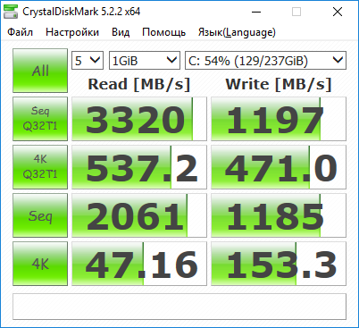 Интерес представляют, в первую очередь, скоростные характеристики SSD, который используется в качестве системного накопителя.