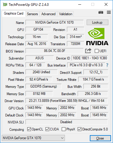 | Видеоподсистема | Nvidia GeForce GTX 1070 (8 ГБ GDDR5) | |