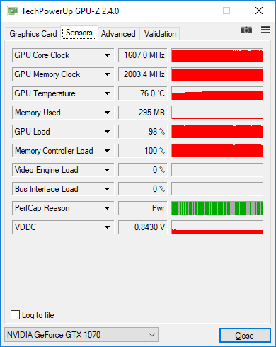Как выяснилось в ходе тестирования, при стрессовой загрузке видеокарты (FurMark) графический процессор работает на частоте 1607 МГц, а память — на частоте 2003 МГц, что совсем неплохо.
