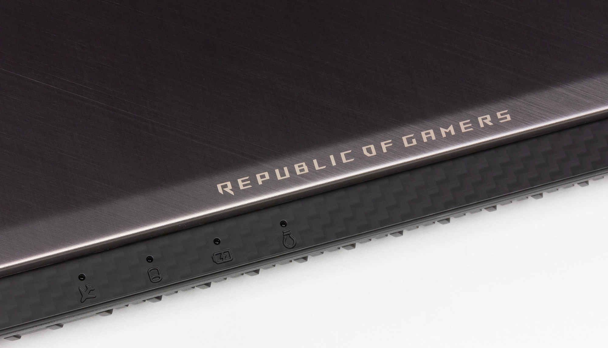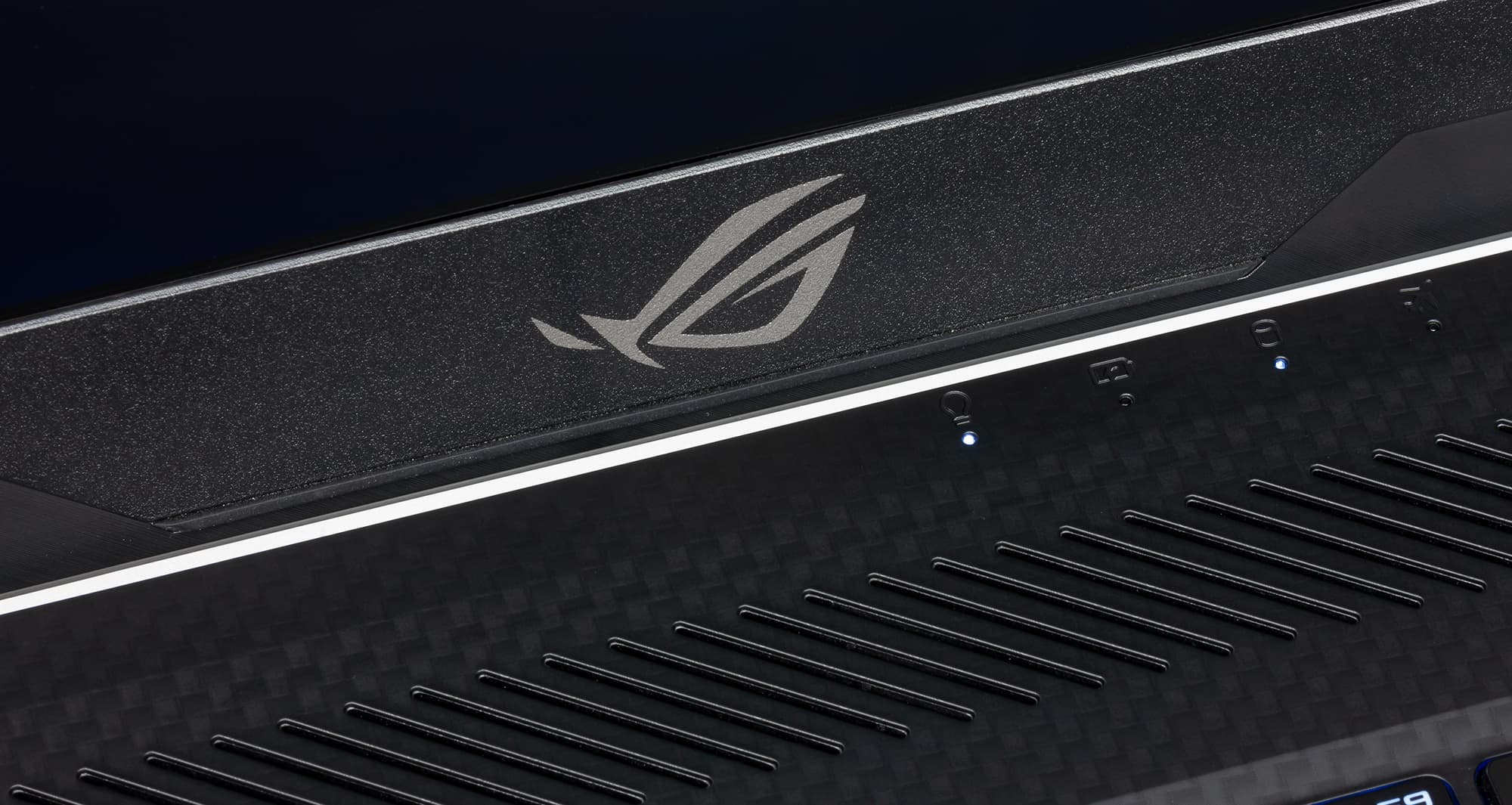 В левом углу рабочей поверхности, над клавиатурой, есть четыре отдельные клавиши управления ноутбуком: фирменная клавиша с эмблемой ROG, предназначенная для запуска приложения ROG Gaming Center, клавиша включения/отключения микрофона и две клавиши управления громкостью звука.