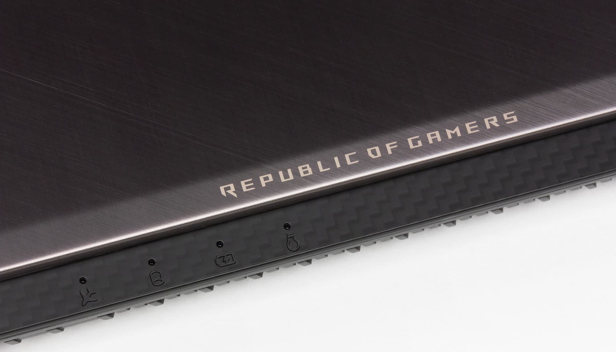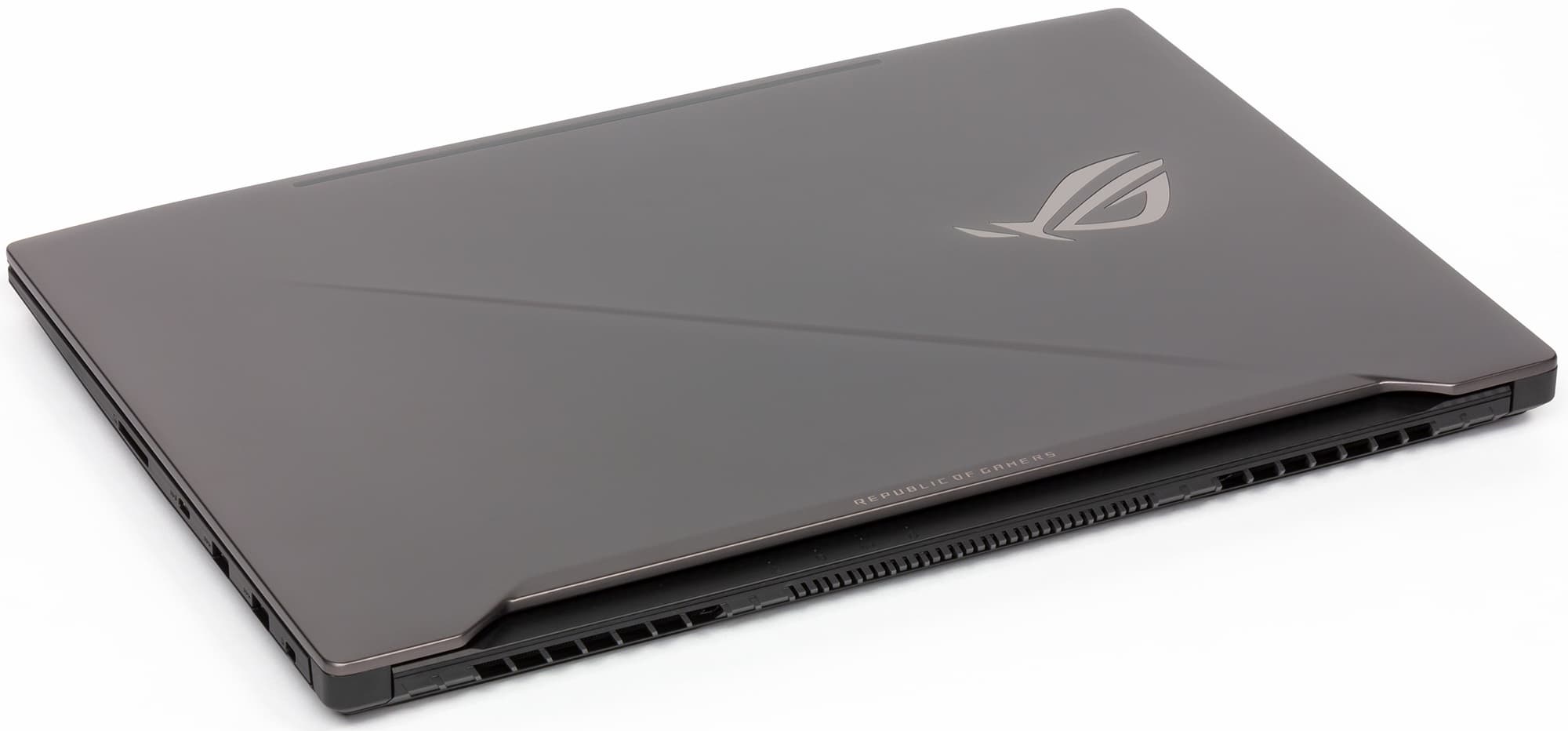 Толщина рамки вокруг экрана с боков составляет составляет 13 мм, сверху — 18 мм, а снизу — 28 мм. На верхней части рамки расположены веб-камера и отверстия двух микрофонов, а снизу — зеркальный логотип серии ROG.