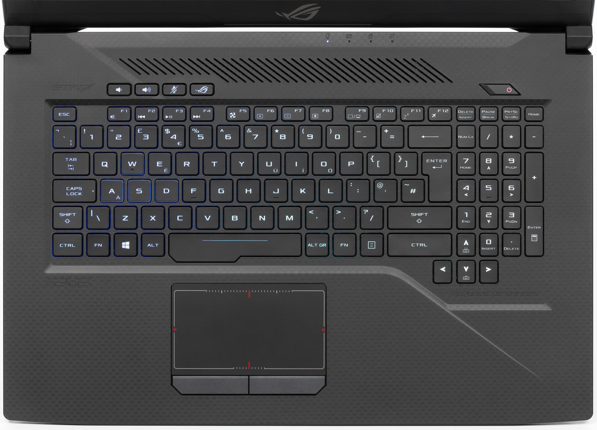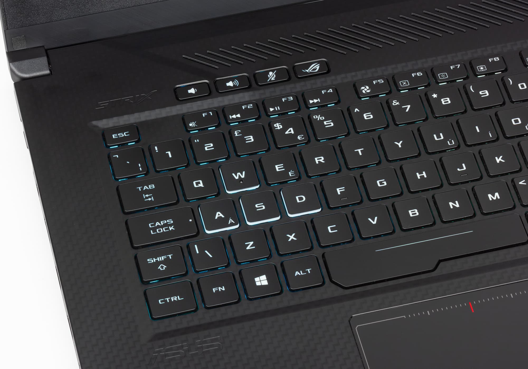 В ноутбуке Asus ROG Strix GL703GM используется клавиатура мембранного типа с увеличенным расстоянием между клавишами.