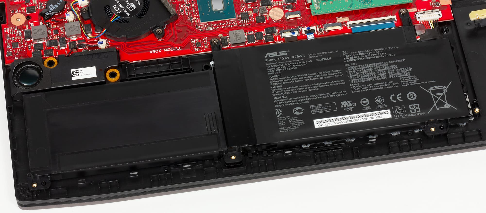 Но есть у ноутбука и минусы. По сегодняшним меркам у него очень маленький SSD-накопитель (128 ГБ), используемый в качестве системного, да и производительность этого накопителя не блещет. Экран на основе TN-матрицы с высокой частотой обновления имеет смысл в игровых решениях, но все-таки в целом качество у экрана среднее. Кроме того, ноутбук шумноват, хотя для игровой модели это не самый важный показатель. Ну и, вполне ожидаемо для игровой 17-дюймовой модели, у Asus ROG Strix GL703GM слабая батарея.