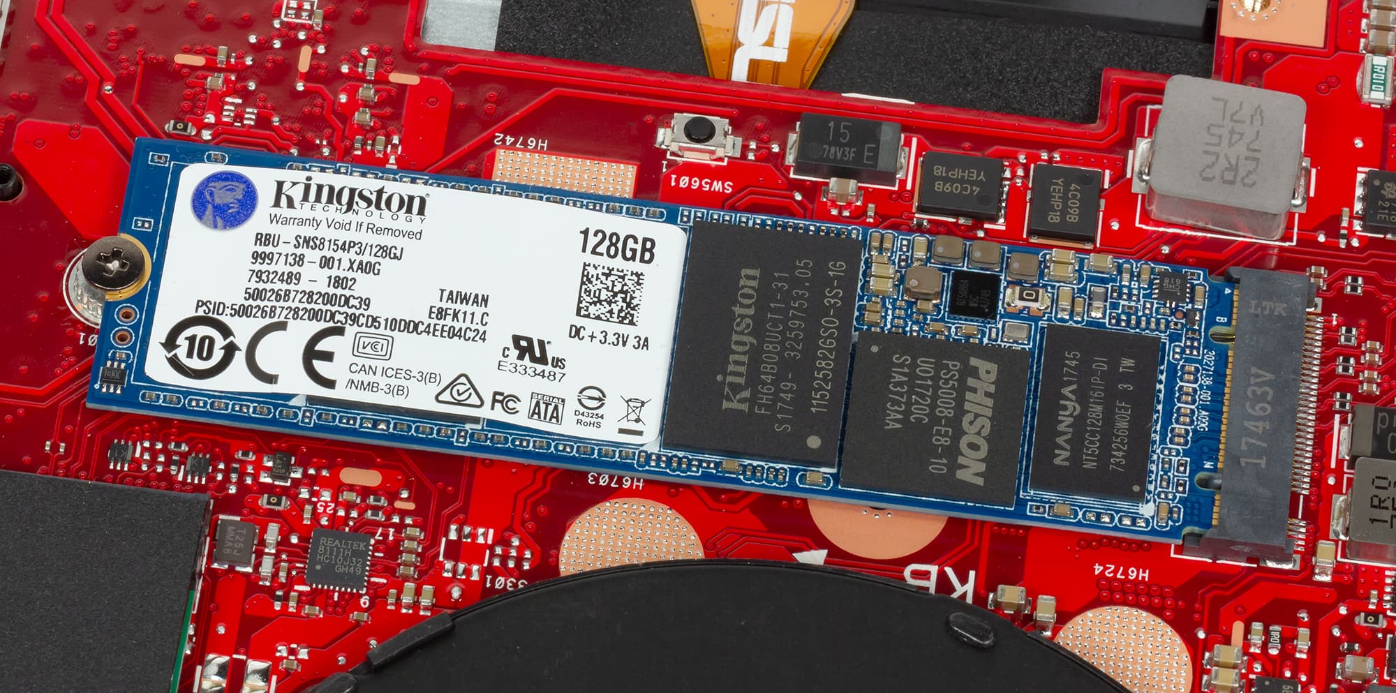 SSD-накопитель Kingston RBU-SNS8154P3/128GJ установлен в разъем M.2 и имеет форм-фактор 2280.