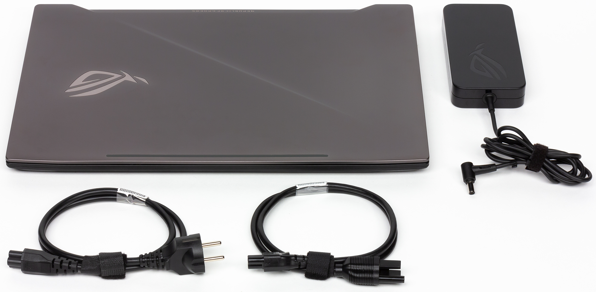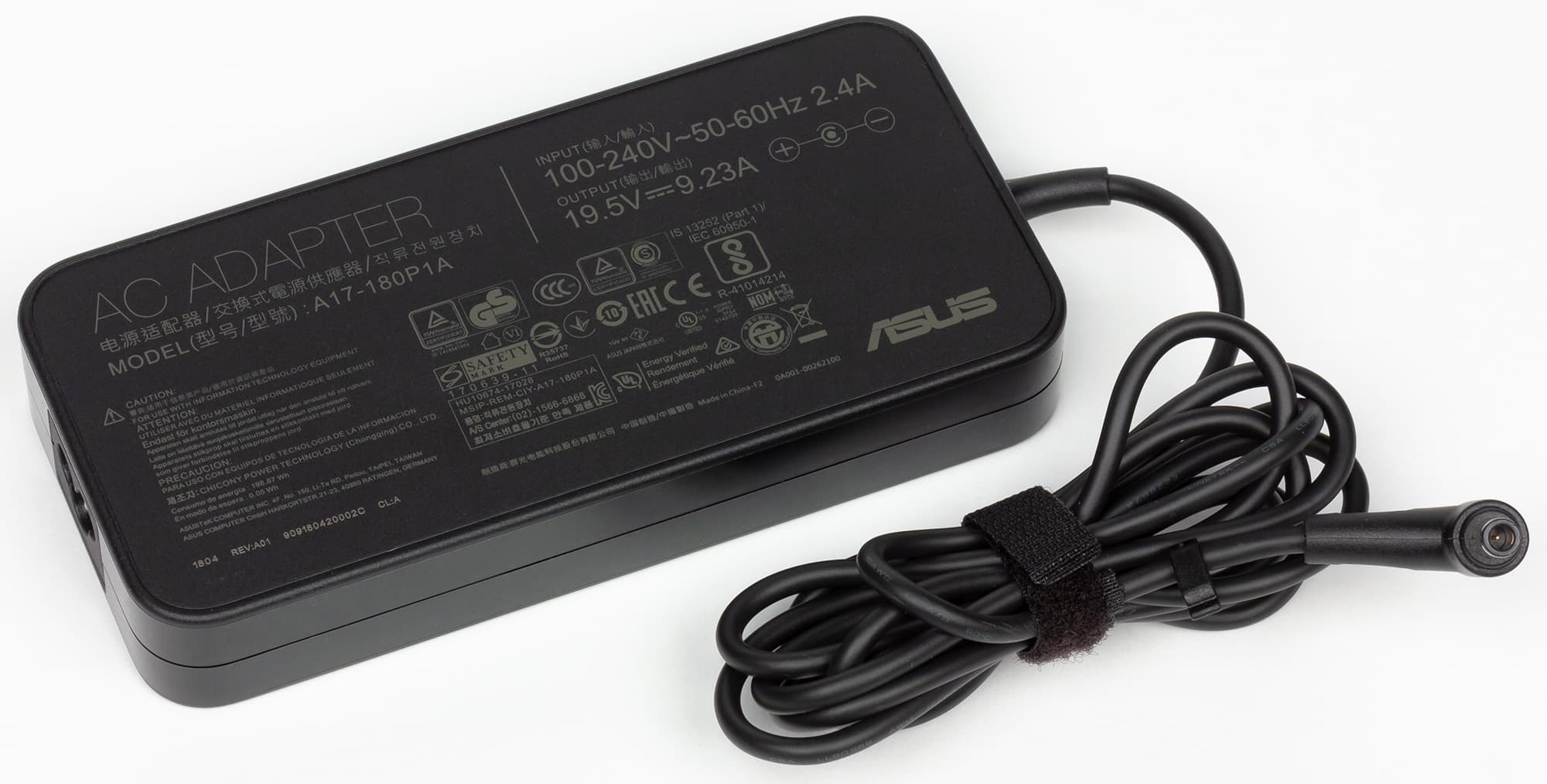 Кроме самого ноутбука в комплект поставки входит краткое руководство пользователя, гарантийный талон и адаптер питания мощностью 180 Вт (19,5 В; 9,23 A).