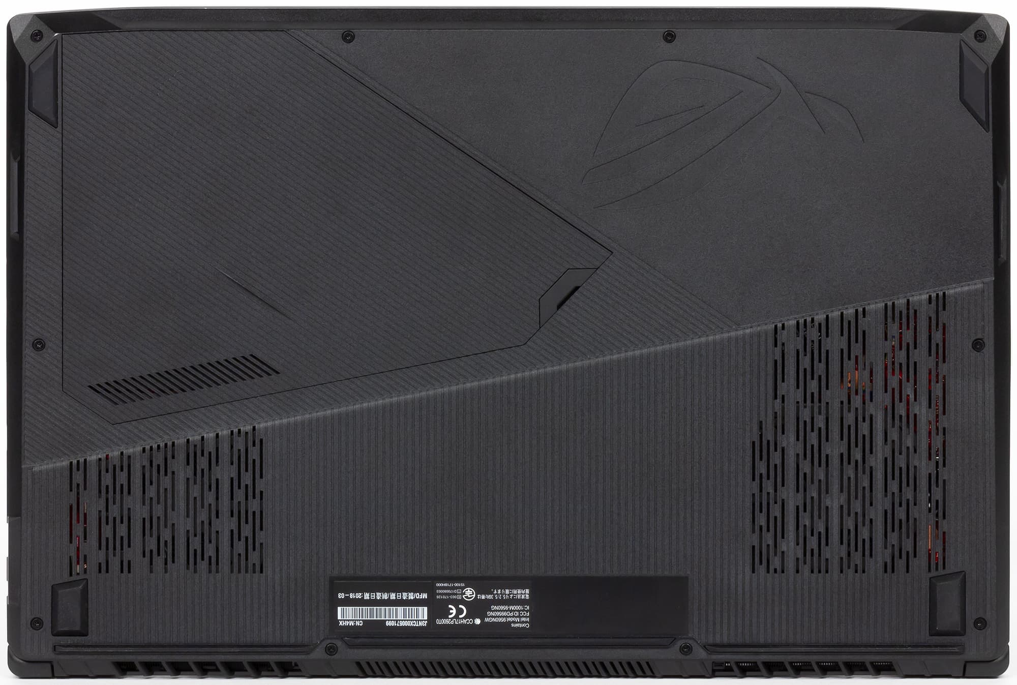 Корпус ноутбука Asus ROG Strix GL703GM выполнен из металла и пластика. Крышка ноутбука сверху выполнена из тонкого листа алюминия черного цвета.