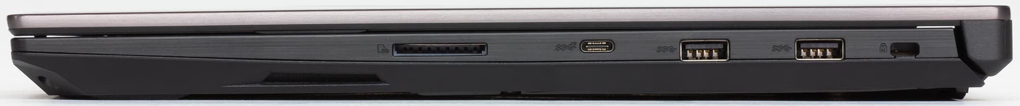 На правом торце имеется еще два порта USB 3.0 (Type-A), порт USB 3.1 (Type-С), слот для карт памяти и отверстие для кенсингтонского замка.