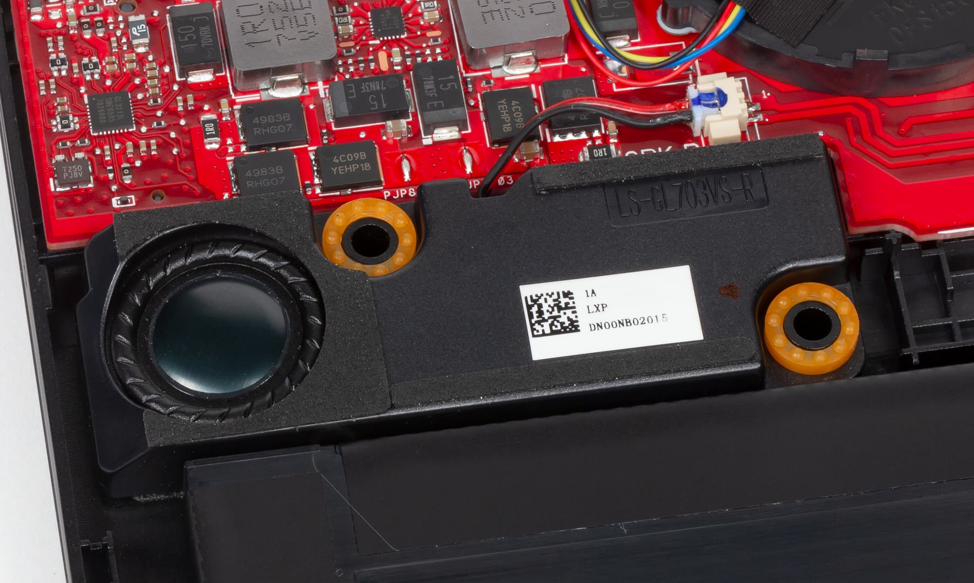 Как уже отмечалось, аудиоподсистема ноутбука Asus ROG Strix GL703GM основана на НDA-кодеке Realtek ALC295, а в корпусе ноутбука установлены два динамика.