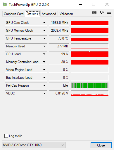 Как выяснилось в ходе тестирования, при стрессовой загрузке видеокарты (FurMark) графический процессор работает на частоте 1569 МГц, а память — на частоте 2003 МГц, что совсем неплохо.