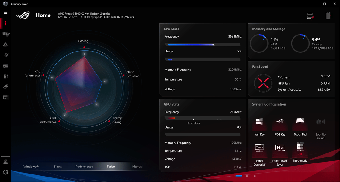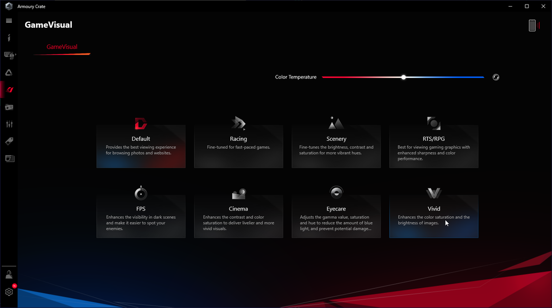 Настройка этих параметров также реализована в Asus ROG Armoury Crate.