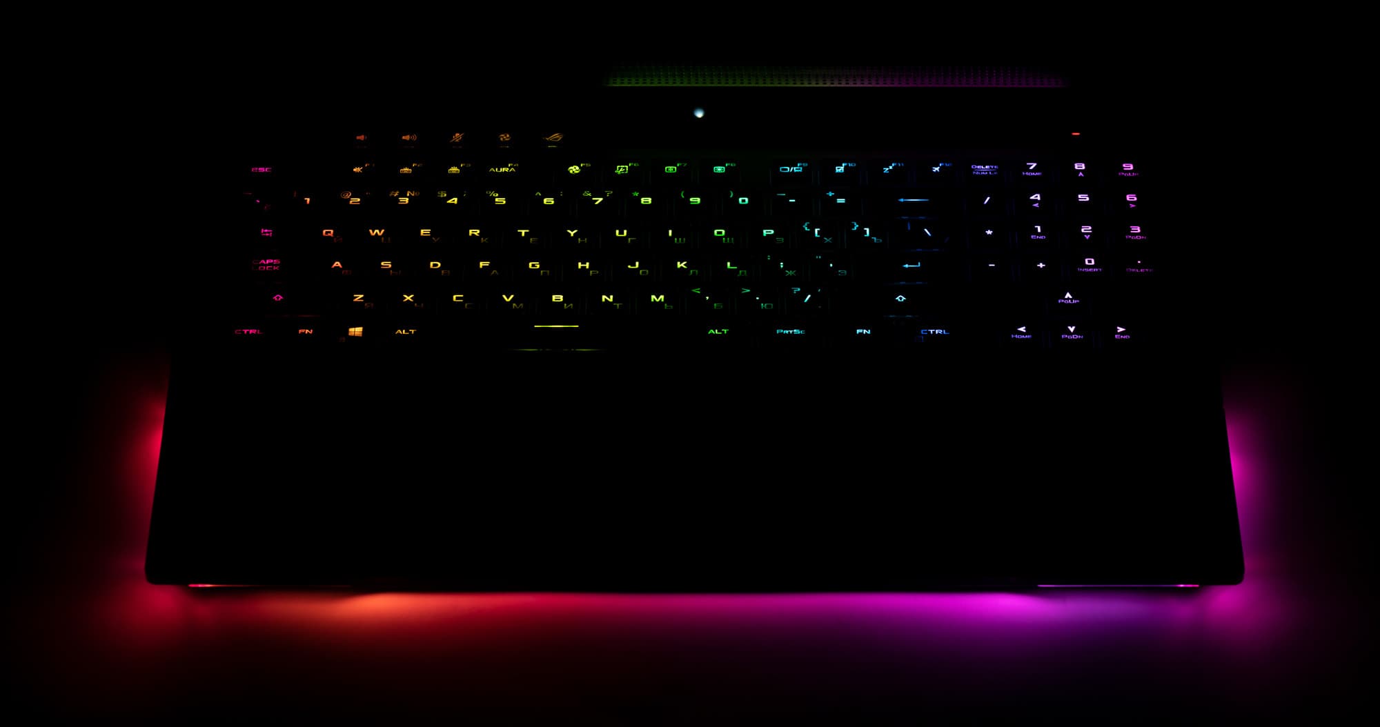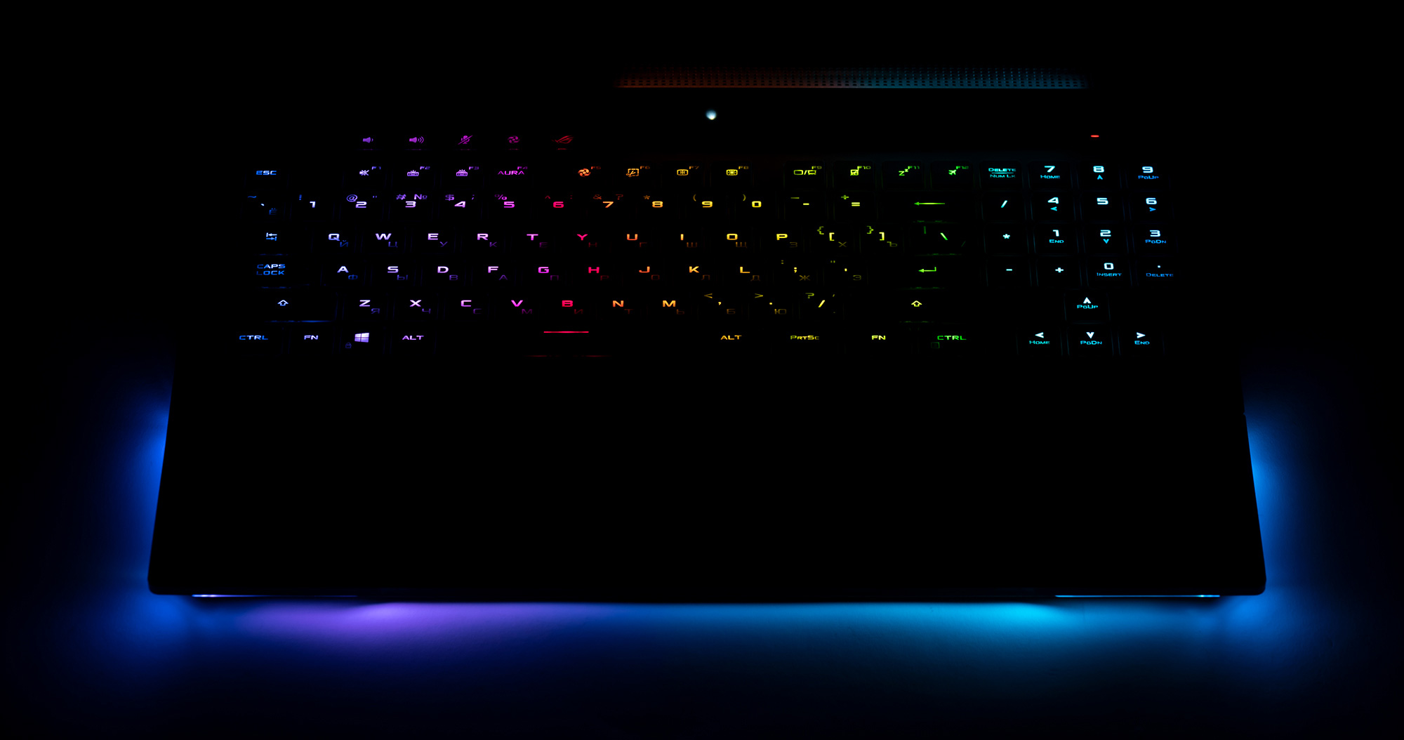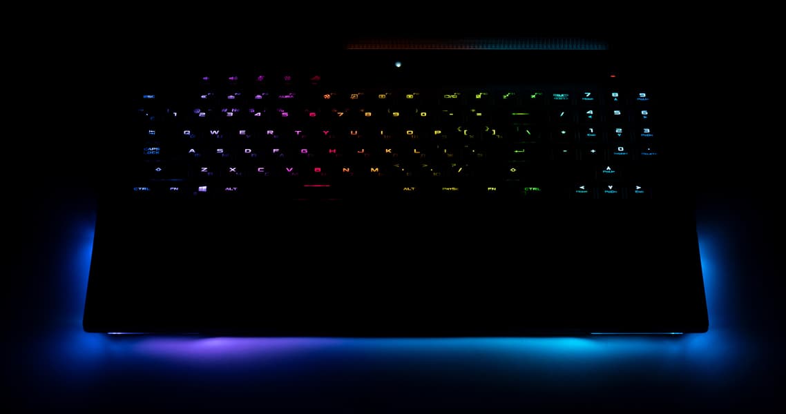 Кроме этого, клавиатура оснащена настраиваемой и синхронизируемой с другими устройствами подсветкой, которая хорошо гармонирует с подсветкой основания корпуса ноутбука.