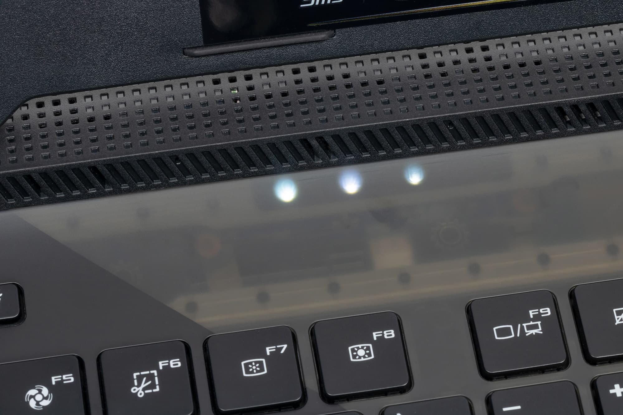 Они сигнализируют о питании ноутбука, состоянии заряда аккумулятора, активности накопителей и состоянии режима полета.