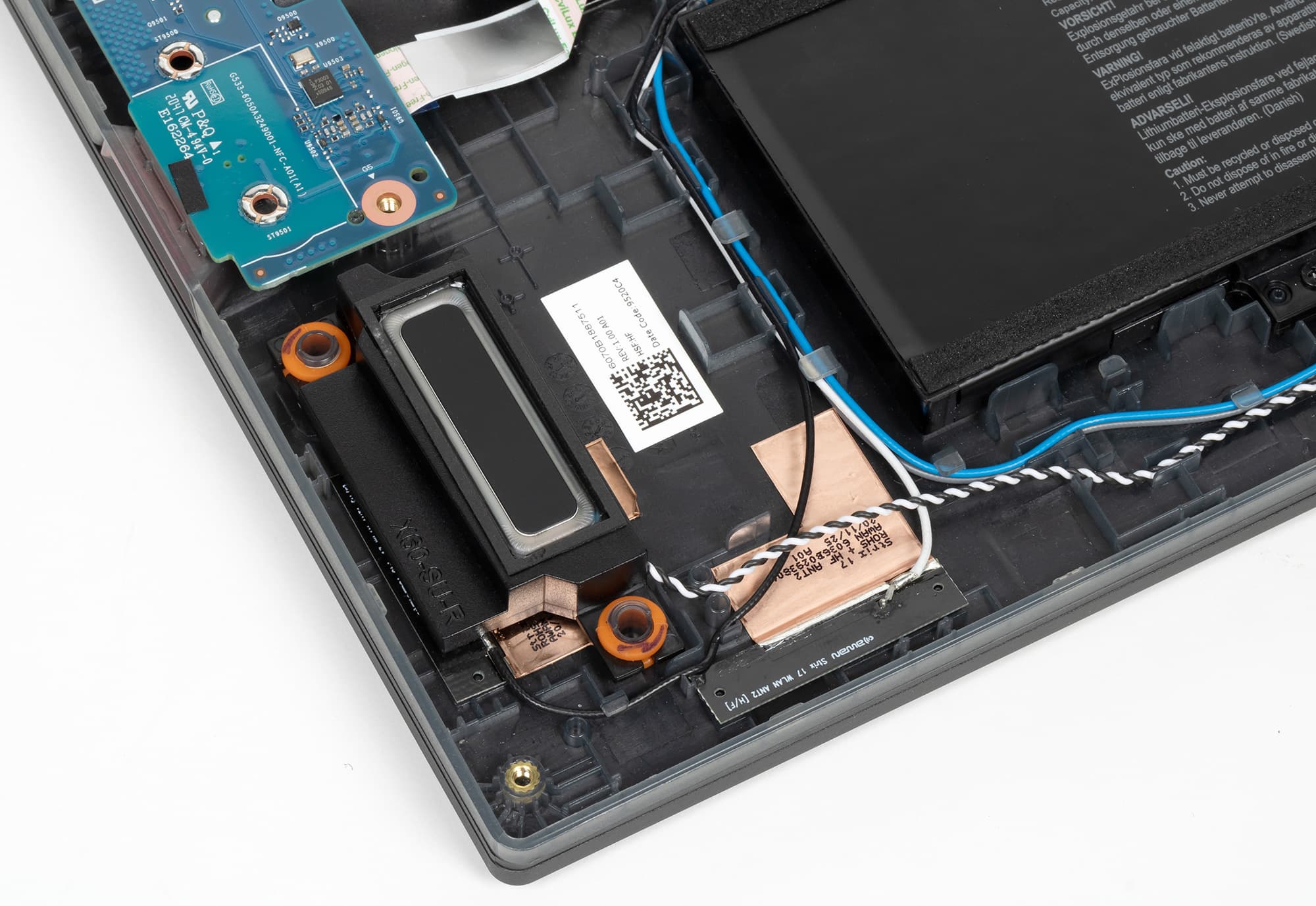 Встроенной веб-камеры у Asus ROG Strix Scar 17 G733 нет, вместо нее компания предлагает использовать внешний модуль ROG GC21. Зато есть NFC-ключ Keystone II.