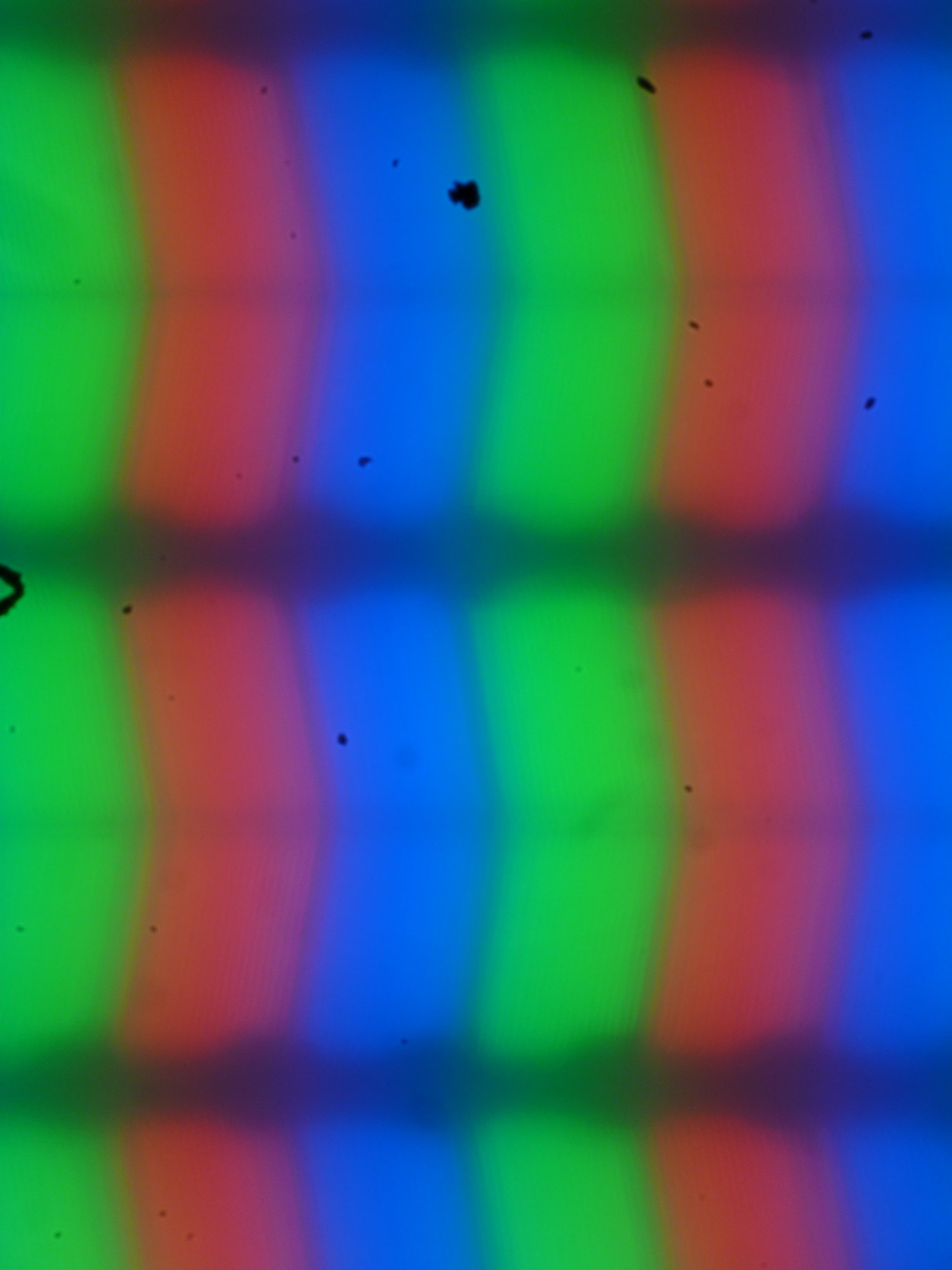 В этом ноутбуке используется матрица типа IPS. Микрофотографии демонстрируют типичную для IPS структуру субпикселей (черные точки — это пыль на матрице фотоаппарата):