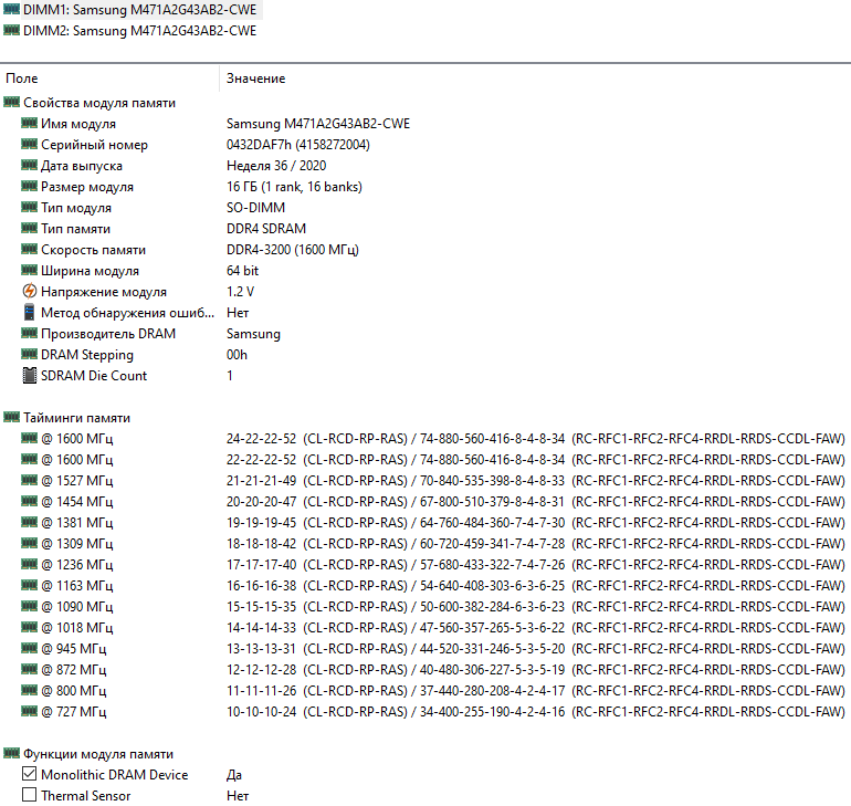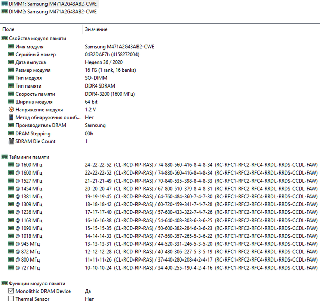 | Оперативная память | 32 (2×16) ГБ SO-DIMM DDR4-3200 (двухканальный режим, тайминги 22-22-22-52 CR1) | |