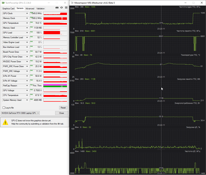 Ниже приведены термоснимки, полученные после долговременной работы ноутбука под максимальной нагрузкой на CPU и GPU (профиль Performance):