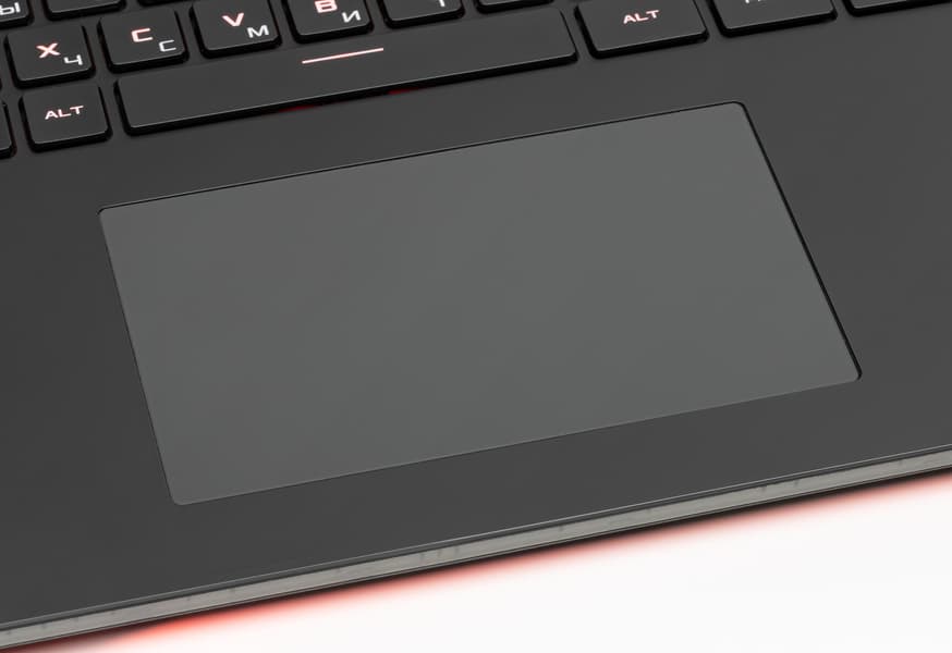 Размеры тачпада ноутбука составляют 130×77 мм, а его поверхность лишь слегка углублена в корпус.