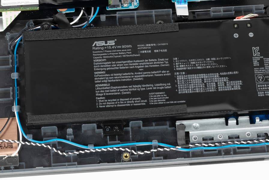 Емкость установленного в ноутбук литий-ионного аккумулятора составляет 90 Вт·ч (5675 мА·ч).