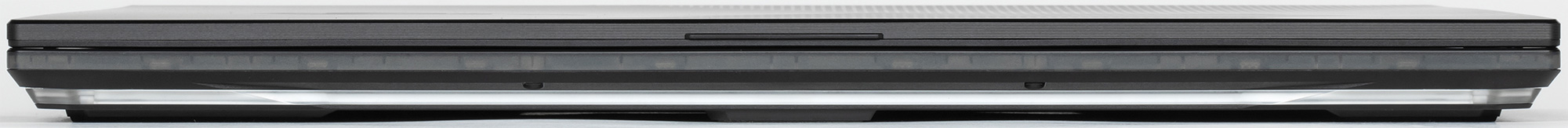 На переднем торце корпуса можно выделить только светодиодную полосу и едва выделяющийся упор для открытия экрана.