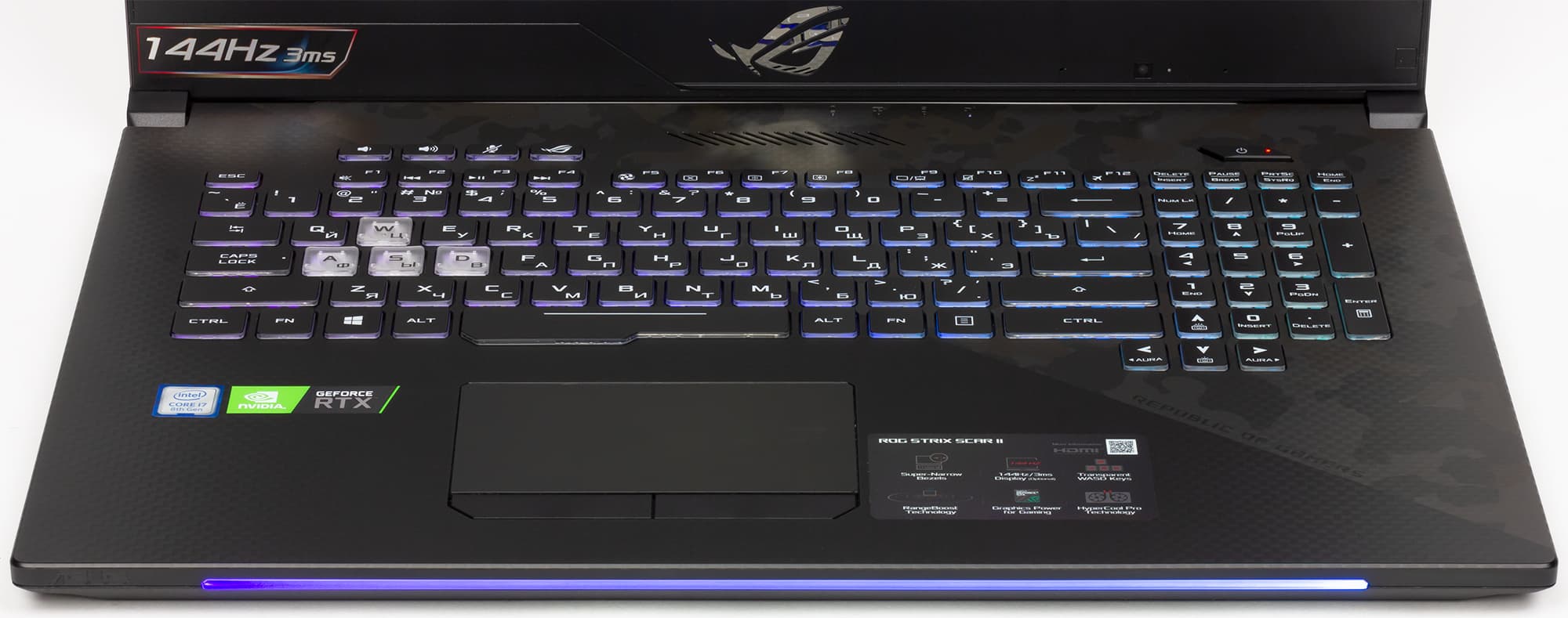 К примеру, в ноутбуке Asus ROG Strix Scar II GL704GV установлен процессор Intel Core 8-го поколения (Coffee Lake) и видеокарта Nvidia GeForce RTX 2060. Именно эту обновленную модель мы и рассмотрим в нашем обзоре.