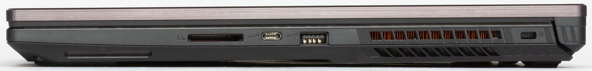 На правом торце имеется порт USB 3.1 (Type-A), порт USB 3.1 (Type-C), слот для карт памяти и отверстие для кенсингтонского замка.