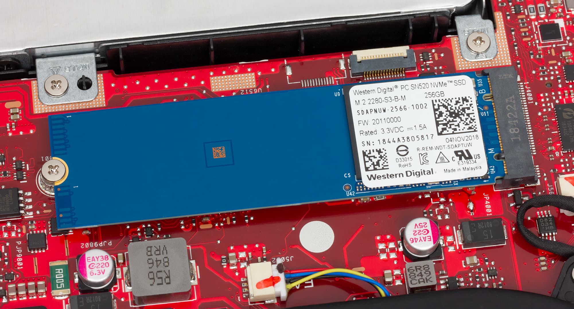 SSD-накопитель WDC PC SN520 установлен в разъем M.2, имеет форм-фактор 2280 и интерфейс PCIe 3.0 x4.