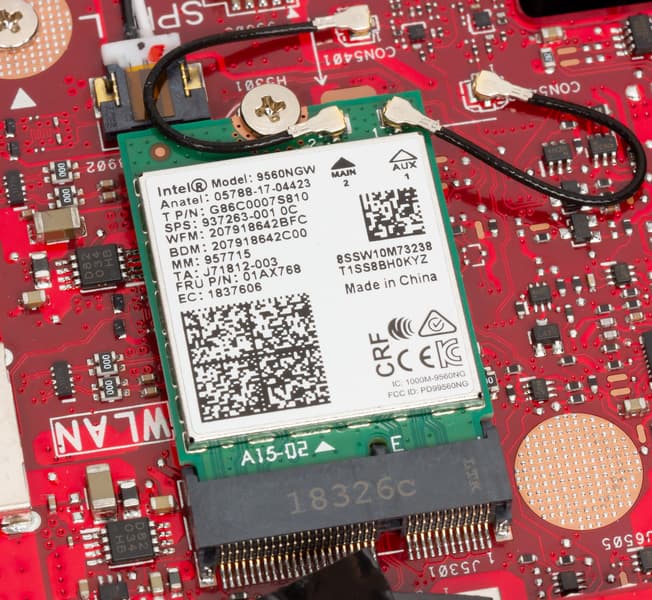 Коммуникационные возможности ноутбука определяются наличием беспроводного двухдиапазонного (2,4 и 5 ГГц) сетевого адаптера Intel Wireless-AC 9560 (CNVi), который соответствует спецификациям 802.11a/b/g/n/ac и Bluetooth 5.0.