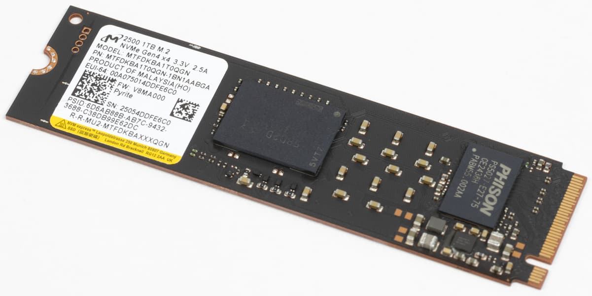 Хранилище представлено терабайтным устройством Micron Pyrite с интерфейсом подключения PCIe 4 ×4.
