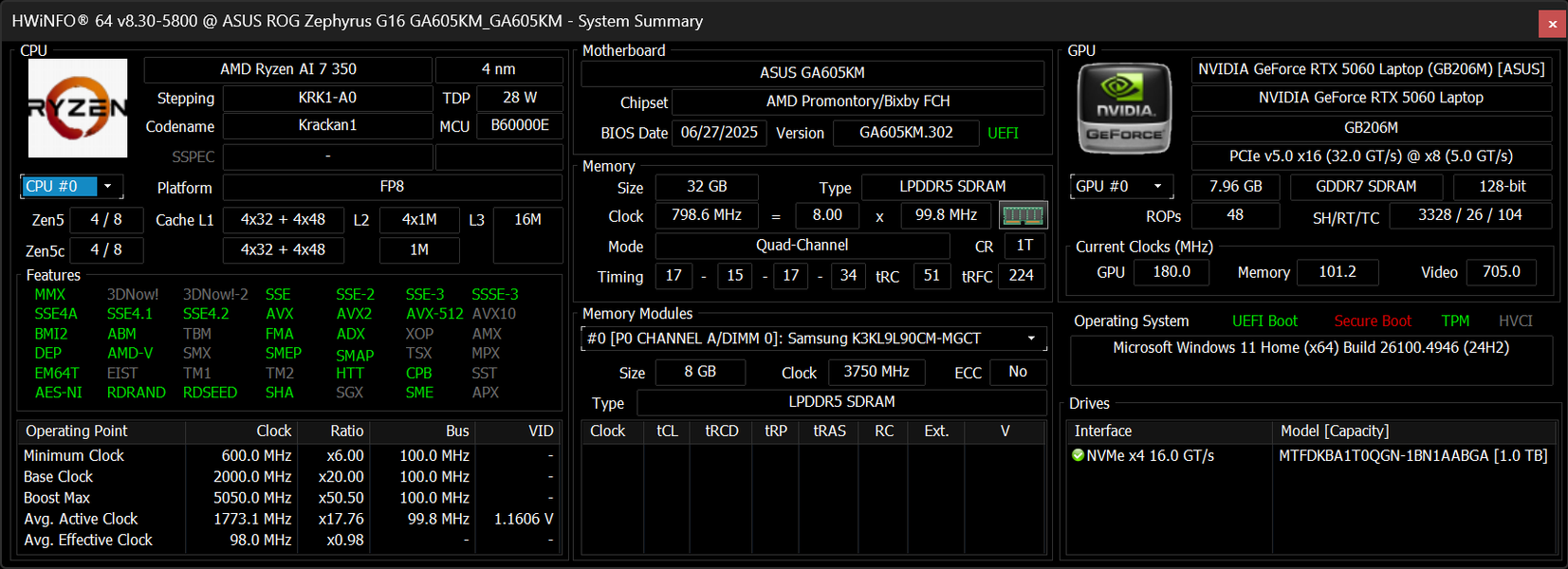 | Asus ROG Zephyrus G16 GA605KM | ||
