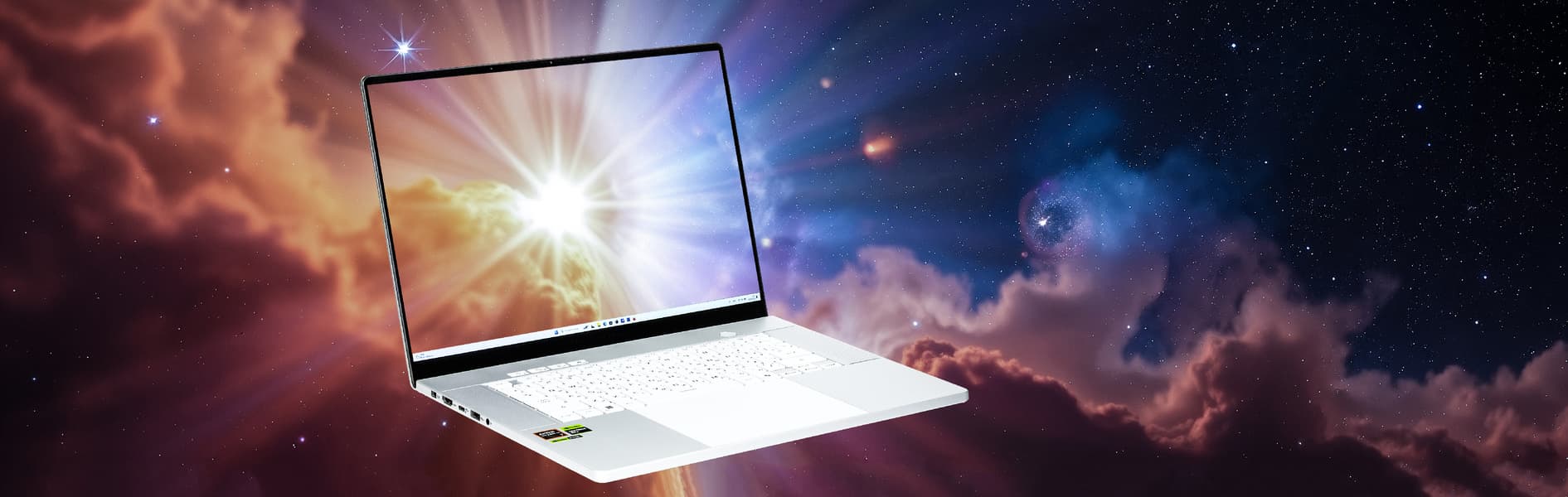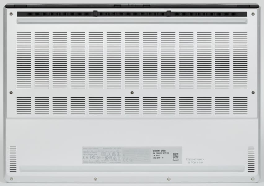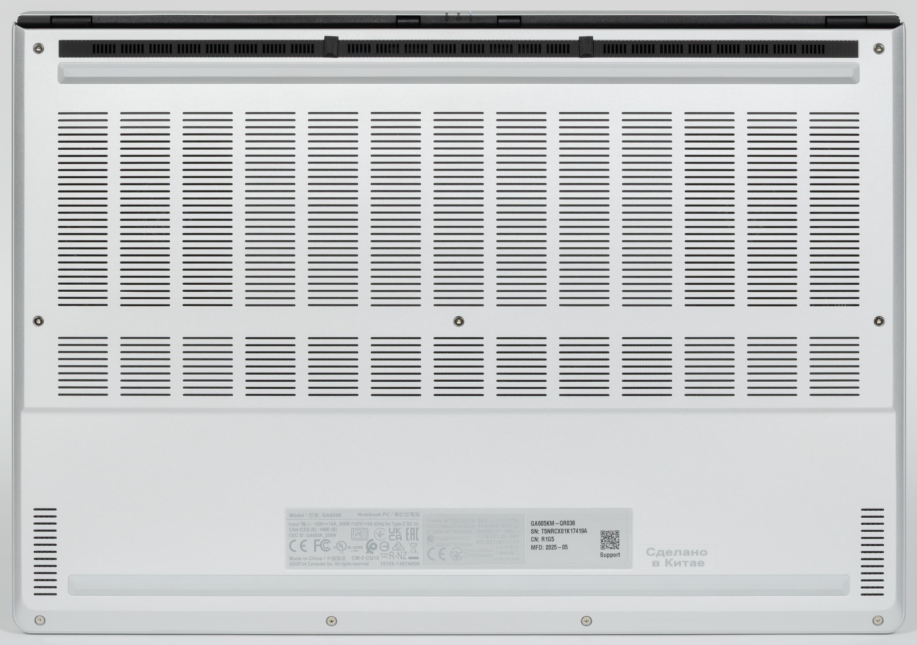 Новинка с отличным дизайном в светлых тонах привлекательна еще и тем, что заключена в цельнометаллический корпус и экипирована экраном OLED 2.5K с соотношением сторон 16:10, который поддерживает 10-битный вывод изображения и обладает сертификацией VESA Display HDR True Black 500. Начинка отражает точку зрения производителя на то, чего достаточно для креативной деятельности и игр: AMD Ryzen AI 7 350, Nvidia GeForce RTX 5060 Laptop, 32 ГБ оперативной памяти, не подлежащей замене и апгрейду, всего один высокоскоростной порт USB 4. Зато второй Type-С (как и USB 4) поддерживает вывод видео и питание внешних устройств, поэтому с учетом наличия отдельного HDMI к ноутбуку можно подключить до трех внешних мониторов одновременно. Имеется картовод для SD. Клавиатура неплохая, но лишена цифрового блока. Нет встроенного адаптера локальной сети. Веб-камера в рамке экрана обладает разрешением 1080p и лишена механической шторки. Автономность машины существенно выше того, чего можно ожидать от настоящих игровых ноутбуков — почти 11 часов работы от батареи при наборе текста и без малого 9 часов при просмотре видео. В тестах реальных приложений мы подтвердили способность устройства справиться даже со сложными и ресурсоемкими приложениями, в том числе для работы с медиаконтентом. Нативное разрешение экрана (2.5K) дает возможность играть в современные динамичные игры.