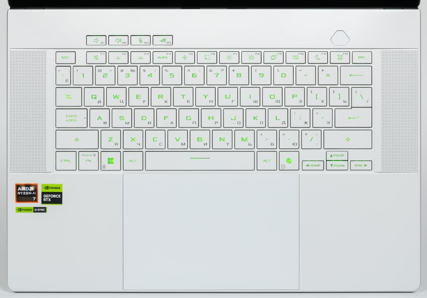 На задней панели заметка надпись Zephyrus и три светодиодных индикатора на кромке крышки. Если пользователю понадобится проконтролировать их состояние, он как ни в чем не бывало развернет устройство на 180 градусов, а затем вернет его в прежнее положение. По нашему разумению, подобное решение достойно анекдота.