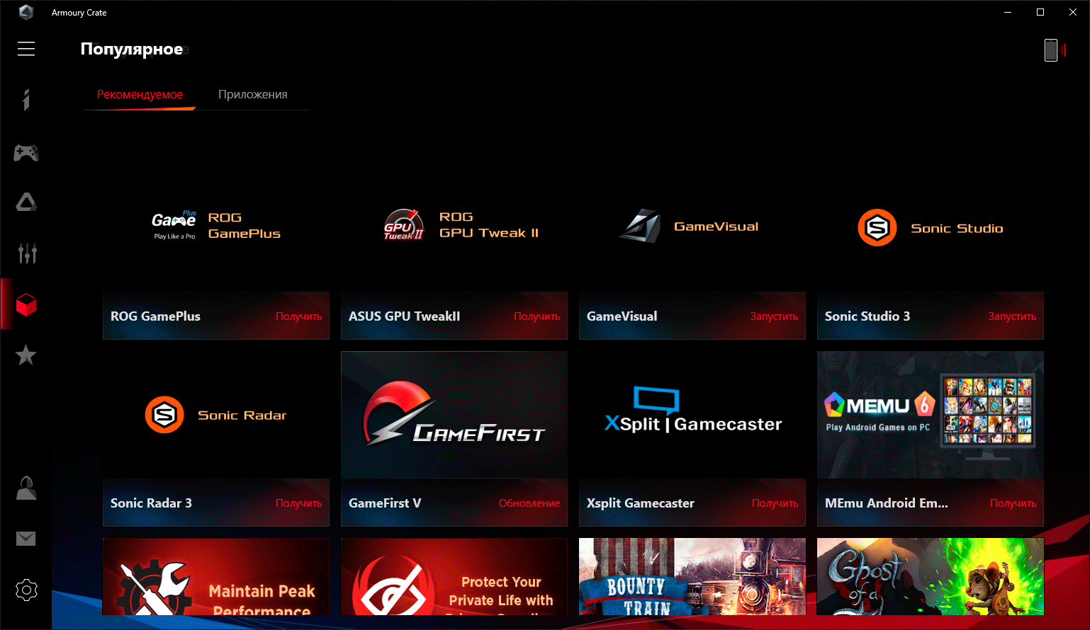 | Приложения | Armoury Crate, GameFirst V, GameVisual | |