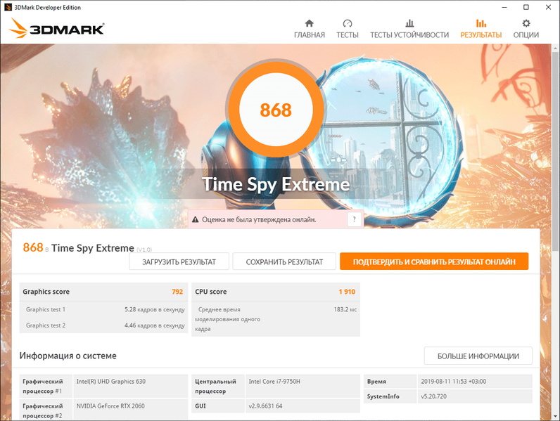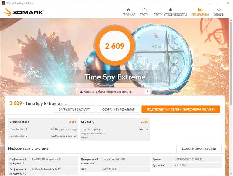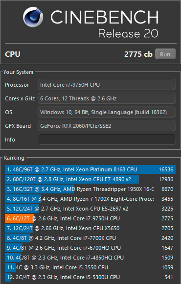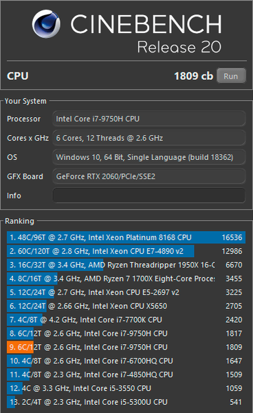 | Процессор | Intel Core i7-9750H (Coffee Lake, 14 нм, 6/12 ядер, до 4,5 ГГц, 45 Вт) | |