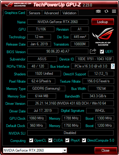Здесь же добавим, что частота видеопамяти составляет 14 ГГц и не отличается от десктопных вариантов Nvidia GeForce RTX 2060.