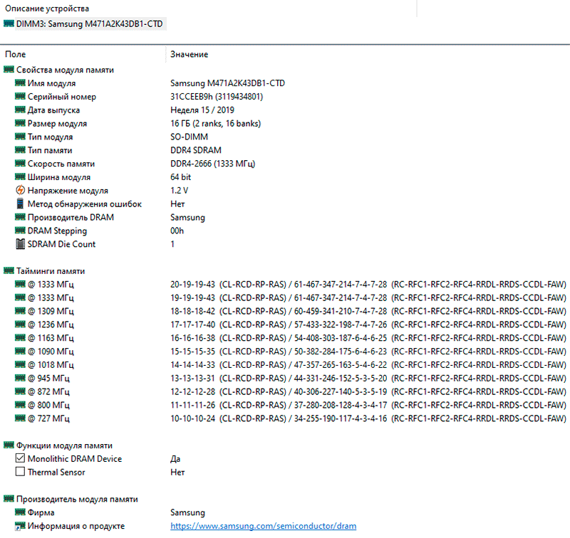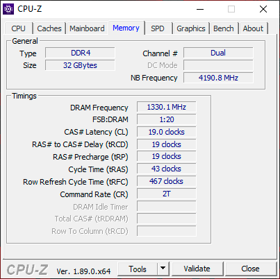 Память производства Samsung работает на очень высоких таймингах 19-19-19-43 при CR2, но при низком экономичном напряжении 1,2 В.