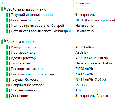 Встроенный литий-ионный аккумулятор емкостью 76 Вт·ч (4940 мА·ч при 15,4 В номинального напряжения) данный адаптер заряжает с 5% до 98% за 1 час и 18 минут. Также возможна зарядка ноутбука через разъем USB Type-C.