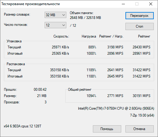 Центральным процессором выбрана 14-нанометровая шестиядерная модель Intel Core i7-9750H с максимальной турбо-частотой 4,5 ГГц и расчетной мощностью 45 ватт.