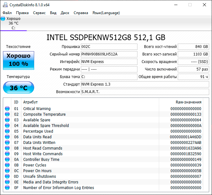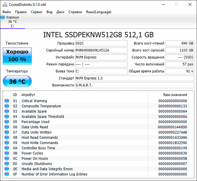 | Накопитель | 1×SSD 512 ГБ (Intel SSD 660p, M.2 2280, PCIe 3.0 x4) | |