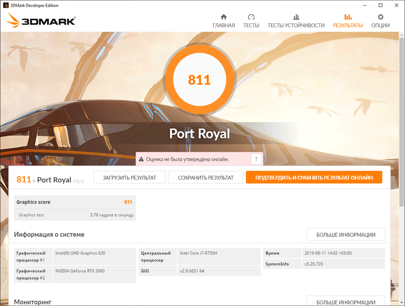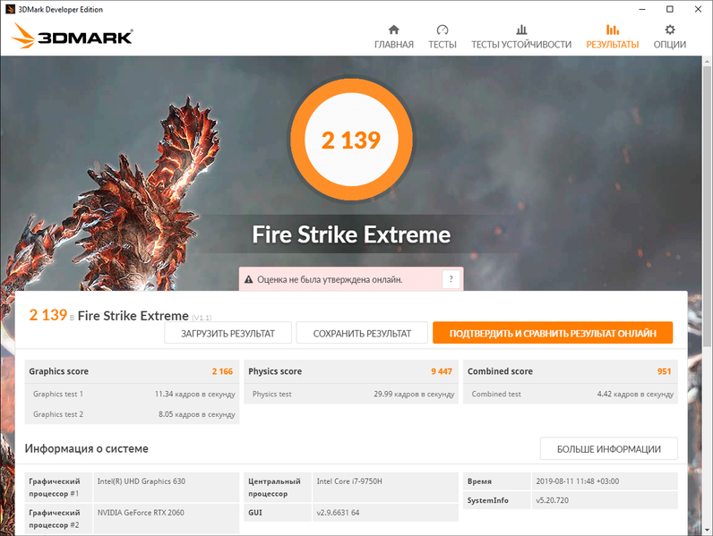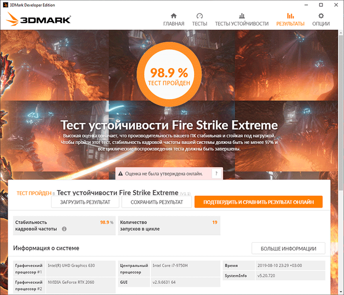 Аналогичных «особенностей» работы не лишена и графическая подсистема ноутбука. Ее мы нагружали тестом стабильности Fire Strike Extreme из пакета 3DMark, а мониторинг осуществляли с помощью MSI Afterburner.